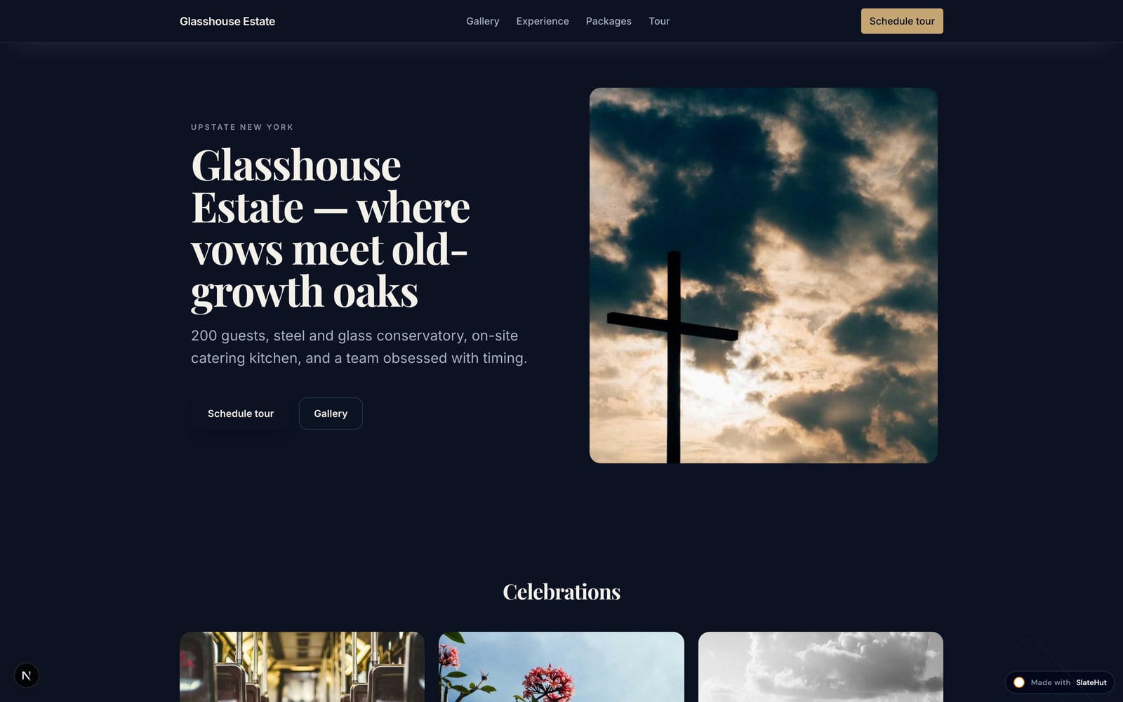 Squarespace templates look great out of the box. SlateHut starts from your words: generate layout and copy, then refine in a field-based editor with forms and domains included.
