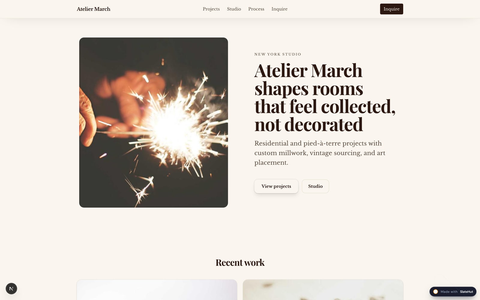 Client work often needs a strong default layout fast. SlateHut generates that baseline so you edit content, not micro-layout.